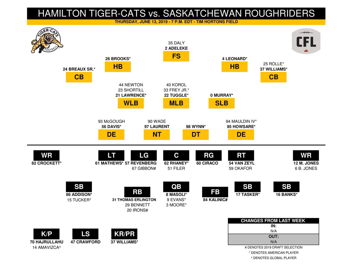 - Lucky Whitehead, Kenny Lawler, Cody Speller, Geoff Gray and Steven Richardson all make their first starts
