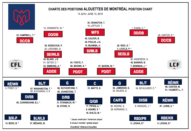 - DeVier Posey, BJ Cunningham, Eugene Lewis, Malcolm Carter, Felix Faubert-Lussier, and Jake Wieneke are your receivers to watch in Montreal