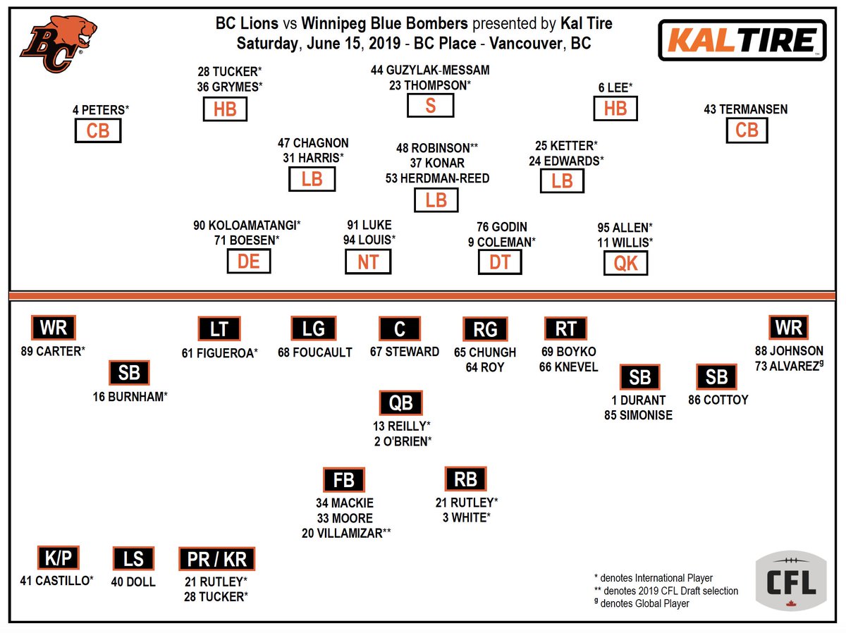 - It will be Stewards’s first regular season game at centre so BC has claimed centre J.S. Roy off of Edmonton’s practice roster.