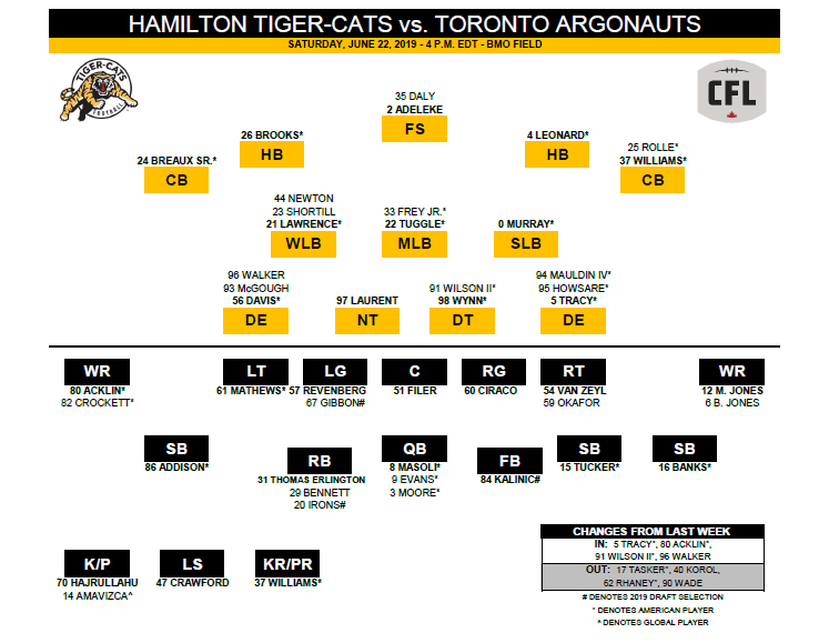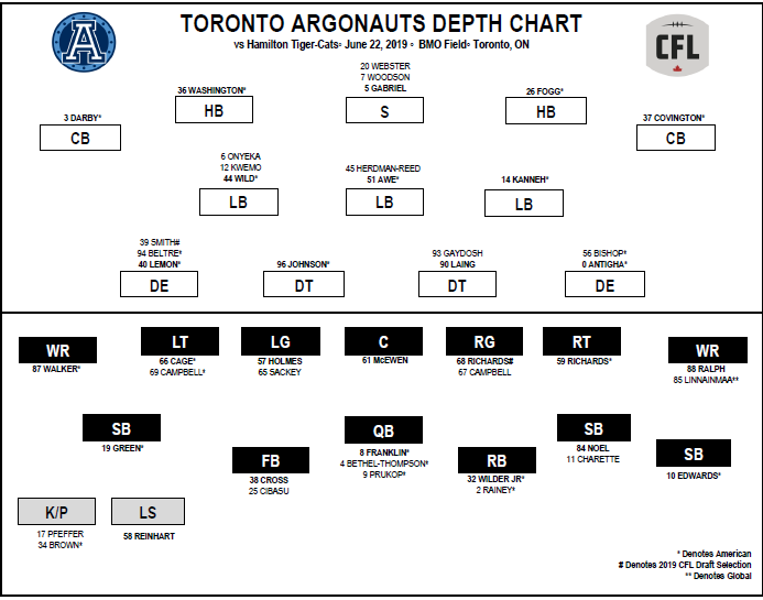 - WR Luke Tasker will miss Saturday’s game against the Argos