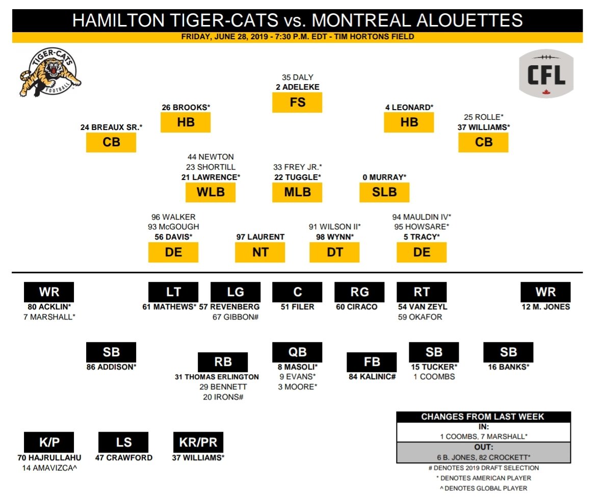 - The Alouettes will be without Taylor Loffler as he’s been placed on the six-game injured list. There’s fear that he has a torn ACL.